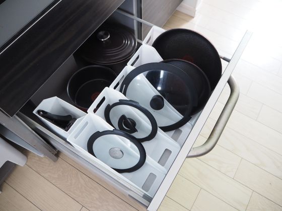 調理道具が楽に出し入れできるよう、フライパンやふたをはどのように収納していますか?片付けのプロによると、「ファイルを使って立てるが正解」とのこと。やり方はとっても簡単!