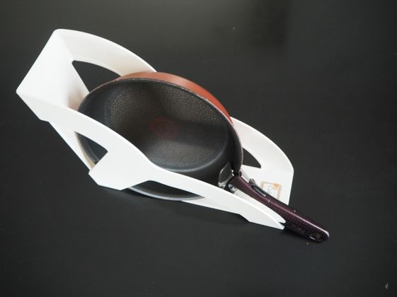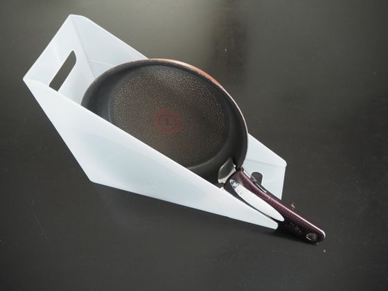 固めの樹脂で薄いフレーム。幅が73㎜とやや狭いがうすいフライパン向き。
