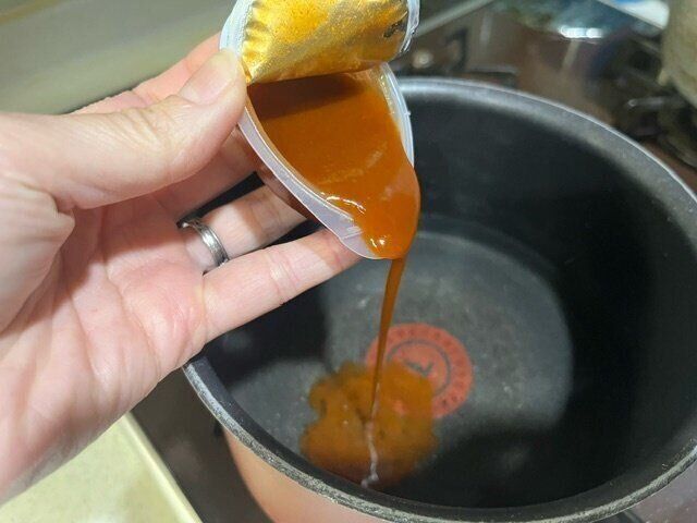 鍋に水150mlを入れ、そこにポーション1個いれます。