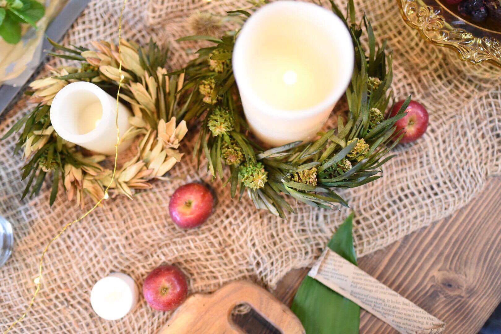 DAISOの園芸コーナーに売っている麻バッグは90㎝×60㎝とビッグサイズ。柔らかさもあるのでナチュラルパーティーのテーブルランナーにはもってこい!上にボタニカルのリースやグリーンを置くだけでワンランクアップしたパーティーを楽しめます。