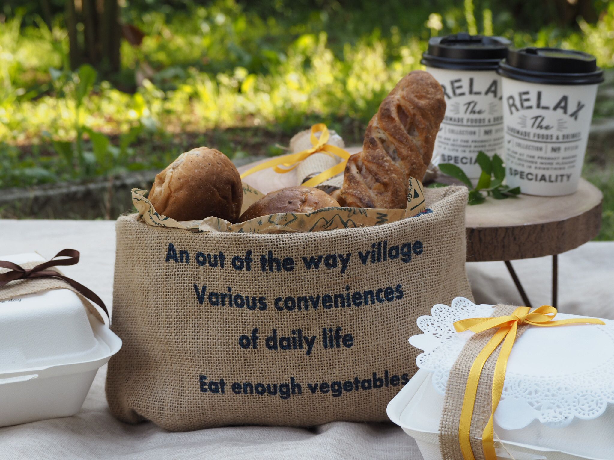 上部を中に織り込んでクッキングシートを中に敷き詰めればパンを入れるのにもぴったり。たたんで持ち運べるのでおしゃピクをするときにも重宝します。