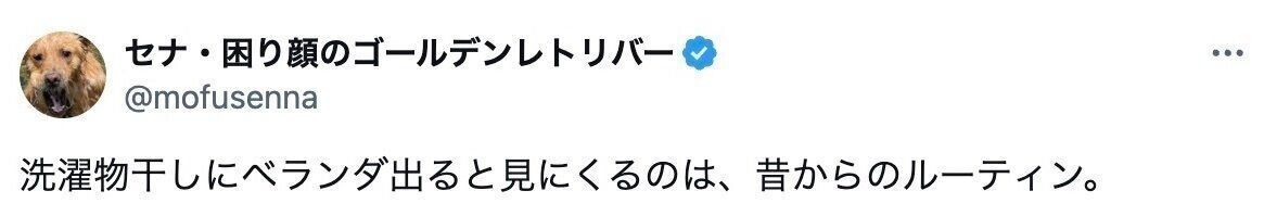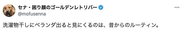セナ・困り顔のゴールデンレトリバーさん(@mofusenna)がXに投稿したのは、洗濯物を干す飼い主さんをみつめる、愛犬セナくんの写真。生後3カ月の頃から変わらない優しいまなざしとルーティンに、1.4万件のいいねが集まり話題になりました。