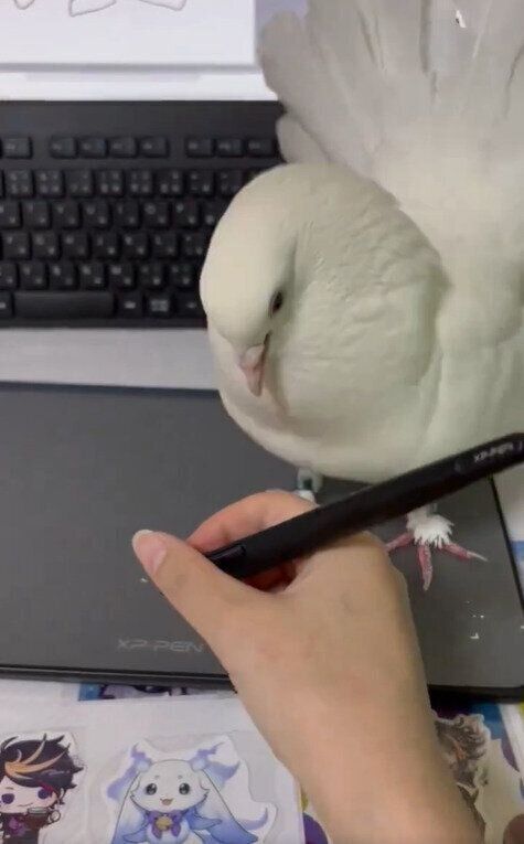 しきむぎさん(@shikionigiri)がタッチペンで絵を描いていると、鳩のむぎくんがジャマをしにやってきました。少々強引な方法に飼い主さんはお手上げ。むぎくんの気持ちが伝わる行動は、Xで13.8万回も再生されるほど話題になりました。