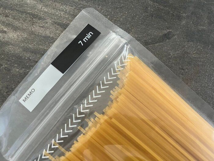 冷蔵庫の中で早く消費しなければならないものや、作り置きおかずがあるときは、トレーにひとまとめにしたうえでクリップ&ラベリング。クリップに「今日」などラベルを添えれば、家族みんなもわかりやすくなりますね。