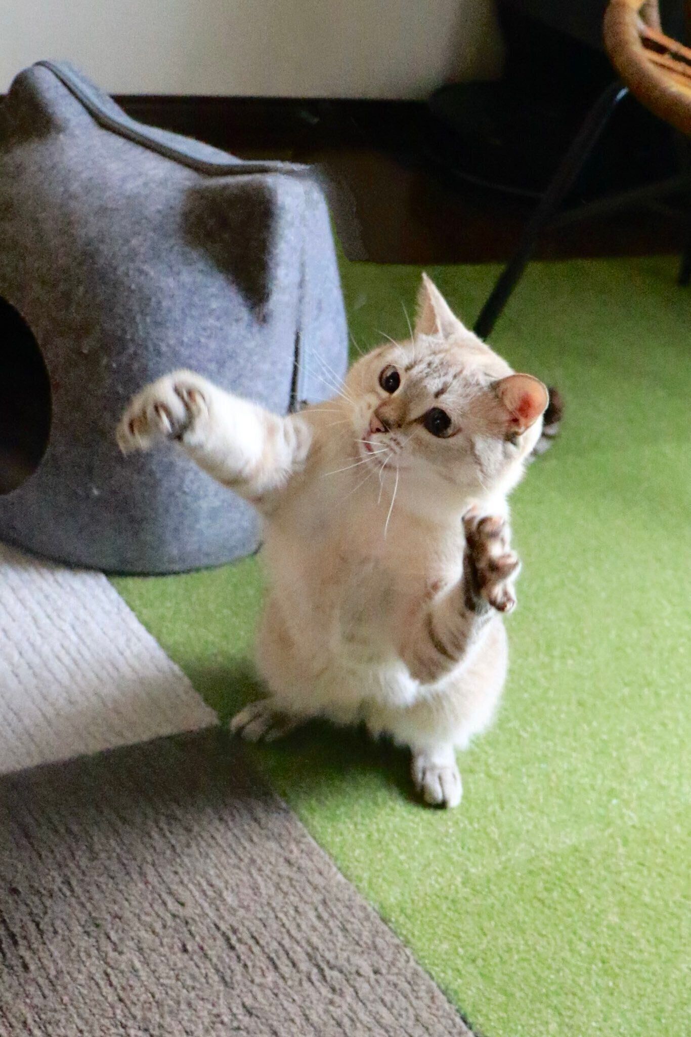 どうやらくうくんは、全力でおもちゃを追いかけているときに伸び縮みするのだそう。伸縮自在なボディを見て、飼い主さんはどんなお気持ちですか?