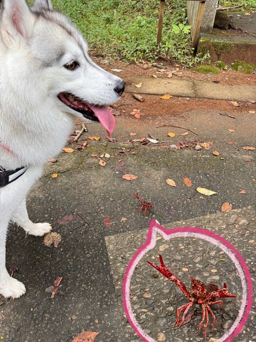 お散歩中に突如さくらちゃんの前に現れたのはザリガニ。