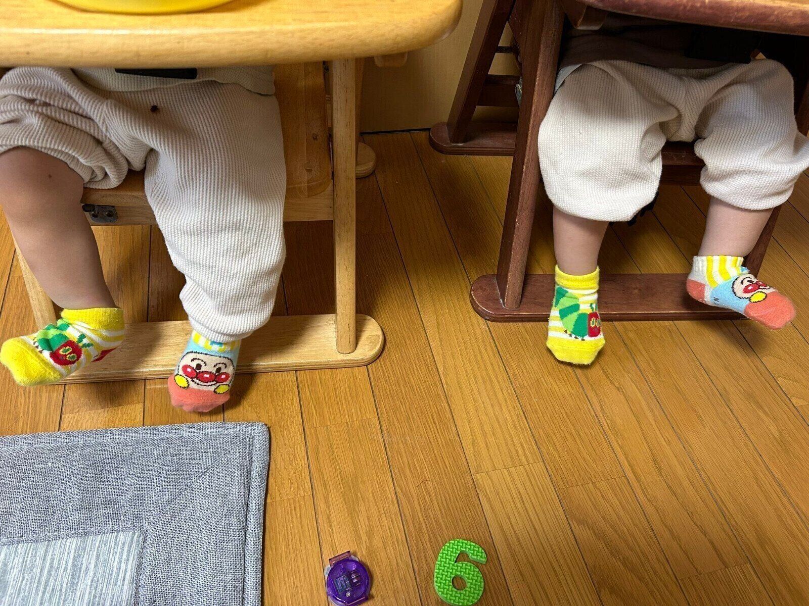 写真には、双子くんの足元が。