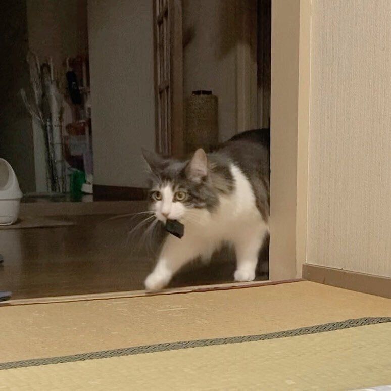 水さん(@3mof__)が投稿したのは、愛猫・藍(らん)くんと遊んでいた際の驚きのできごとです。おもちゃを投げて取ってくる遊びをしていた藍くんと飼い主さん。無事にくわえてきたと思いきや、その口元には予想外のものが。2.9万人が驚きました。
