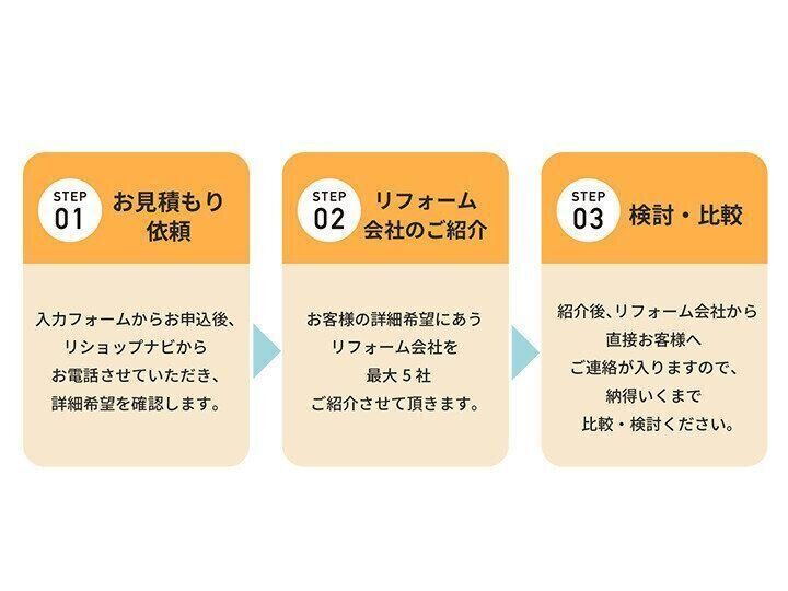 カスタマーサポートがお客様の希望をお伺いしご希望にぴったりの会社をご紹介致します。また、詳細はお電話でご確認するのでリフォームに関する不安や疑問点も解消できますよ。365日、朝10時~夜9時まで対応なのもうれしいポイント。