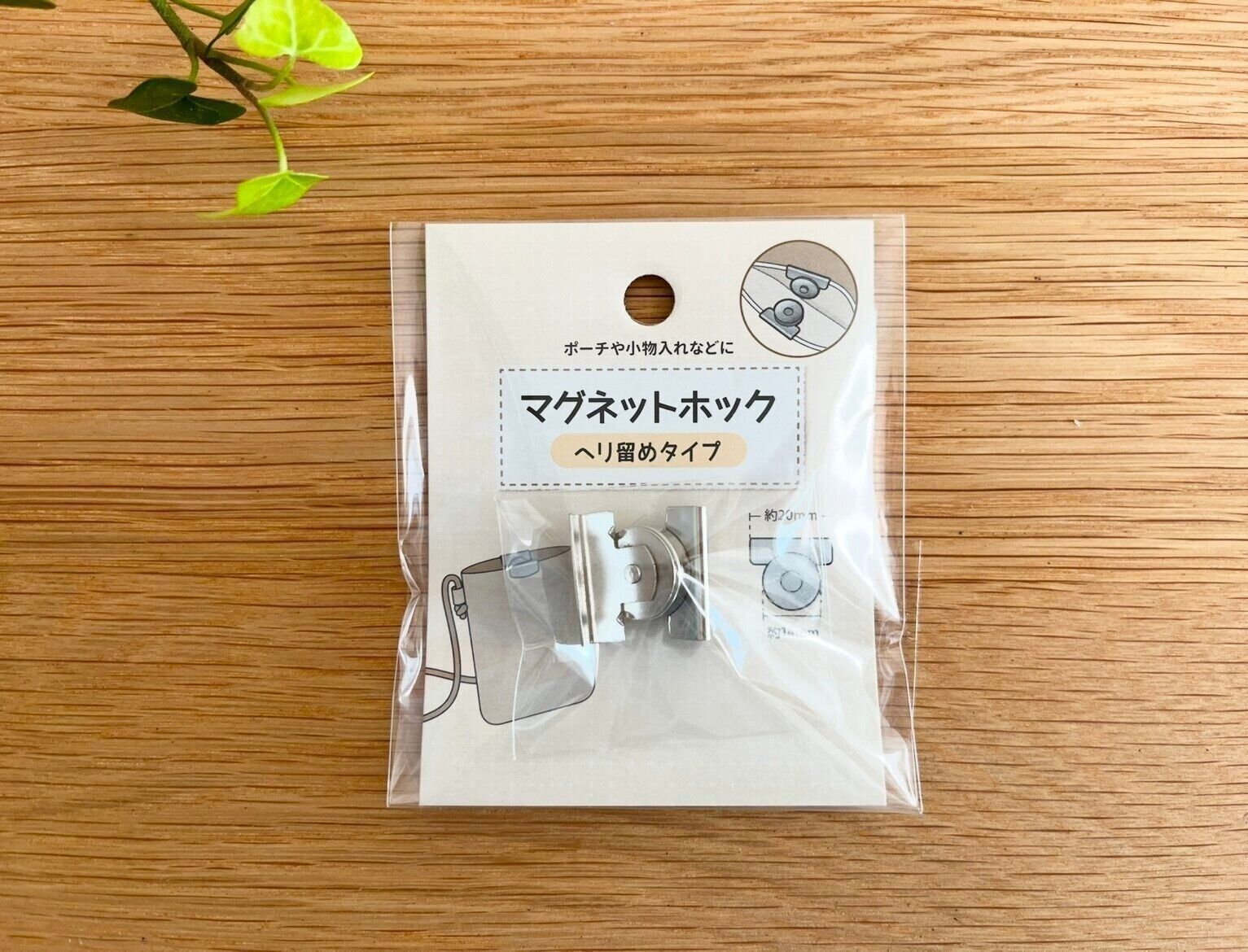 そしてマグネットホックは、生地に縫いつけたり、生地に穴を開けて差し込んだりなど、ちょっと取りつけが面倒なものが多いんですよね…。ですが、こちらの商品を使えば取りつけは超簡単!価格は110円で販売されています。