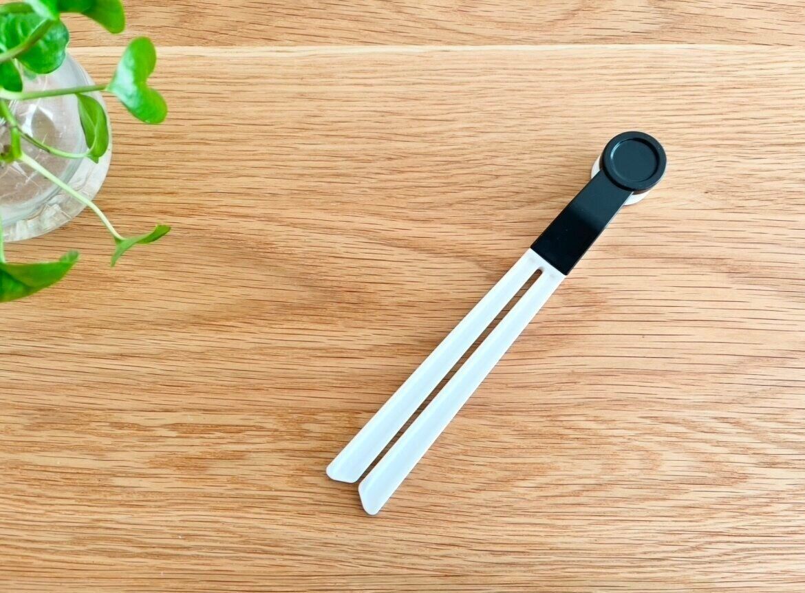 見た目は少し変わったトングのようなデザイン。サイズは、約縦213✕横31✕奥行20mmという手に持ちやすい大きさです。