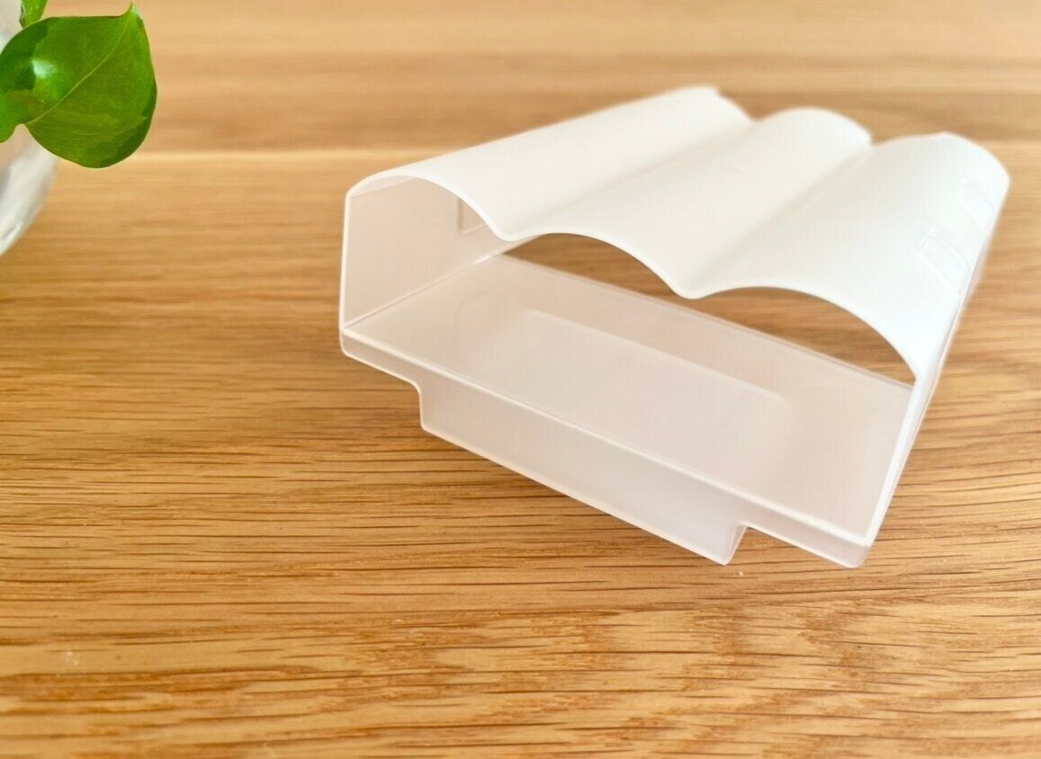 こちらの商品のサイズは、約9.5cm×5cm×13cm。薬味チューブが3本入るように、内側にくぼみがあるのが特徴です。