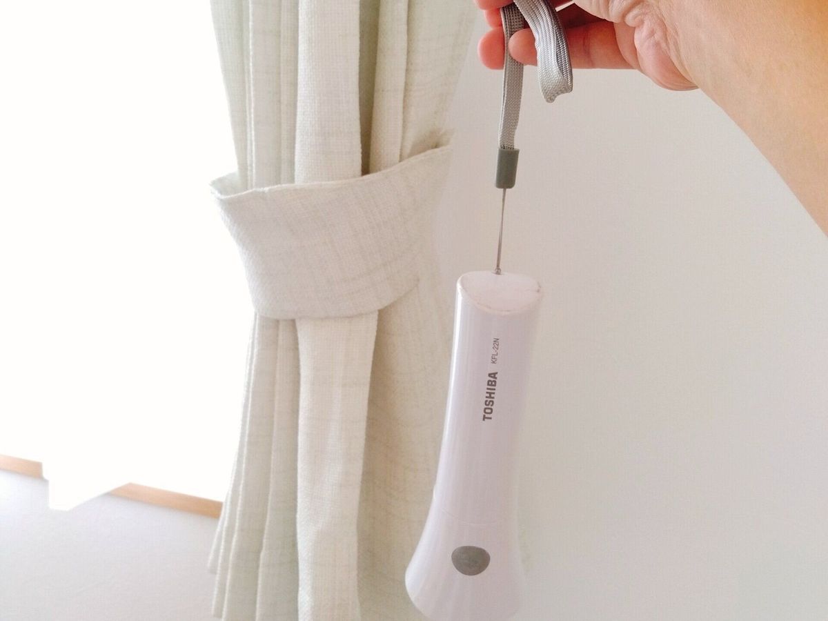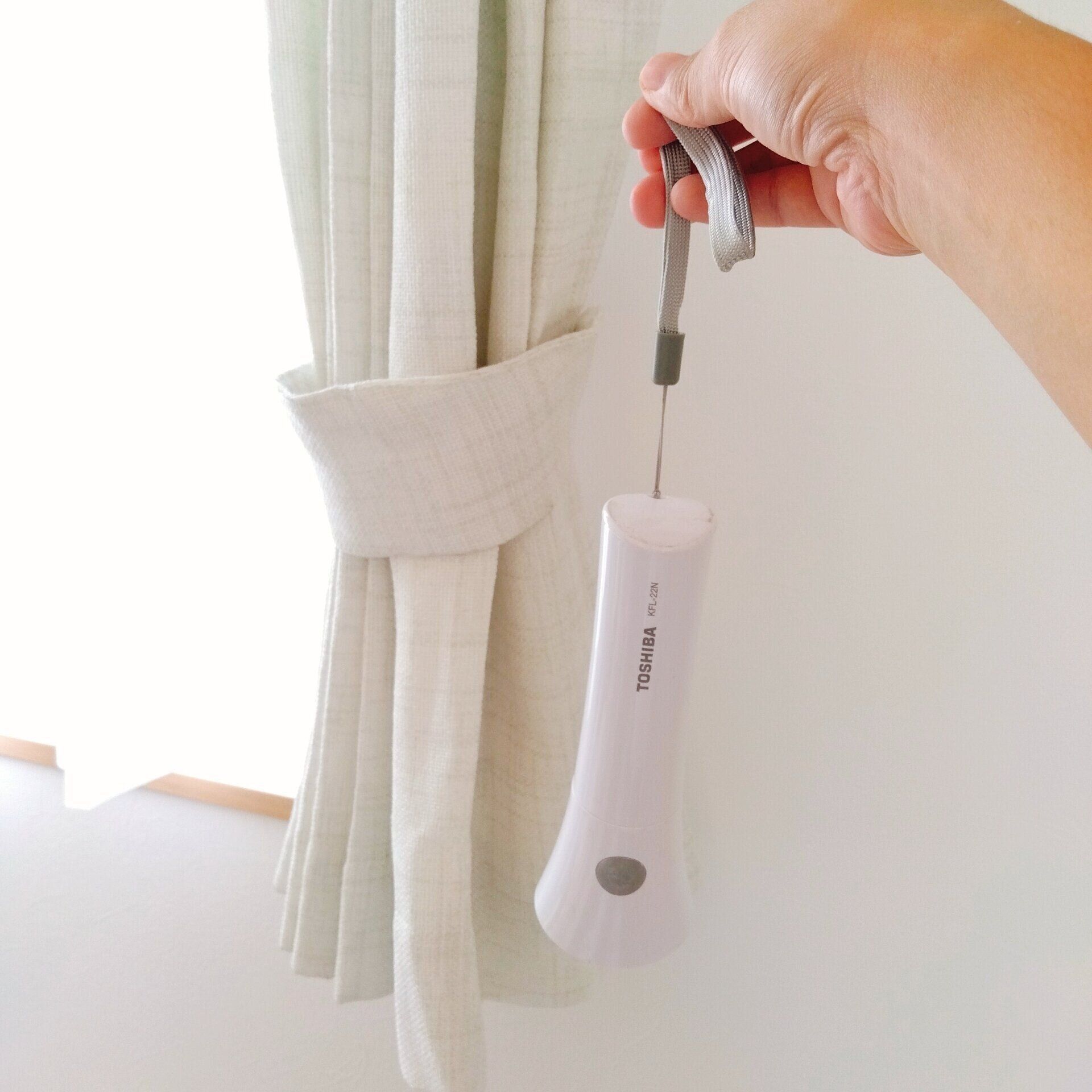 わが家では夜の停電に備えて「懐中電灯」を寝室にも置いています。夜の暗闇の中でも、懐中電灯が側にあれば最短距離で灯りをすぐに確保することができ、安心ですよね。