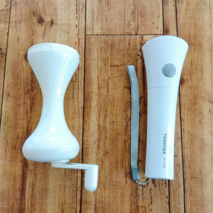 短期間の停電なら電池式が便利で、長期間の停電では電池が無くても使える手回し式の懐中電灯が便利だと思い、わが家では2種類の懐中電灯を準備しています。