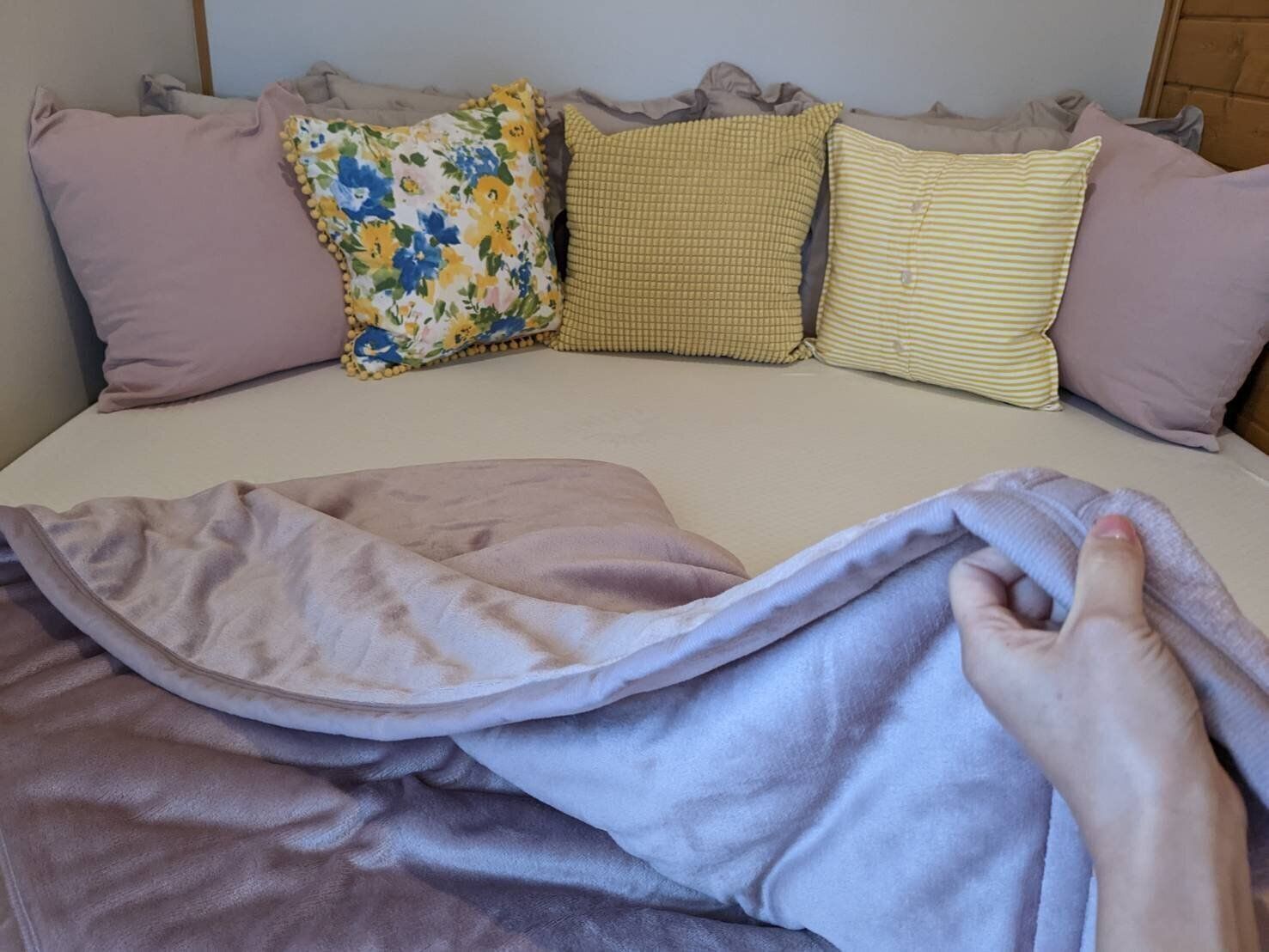 シーツの取りつけ、取り外しも立派な「名もなき家事」のひとつですよね。そんな「名もなき家事」も、羽毛布団からブランケットに変えたことによって、ひとつ減らすことができましたよ。