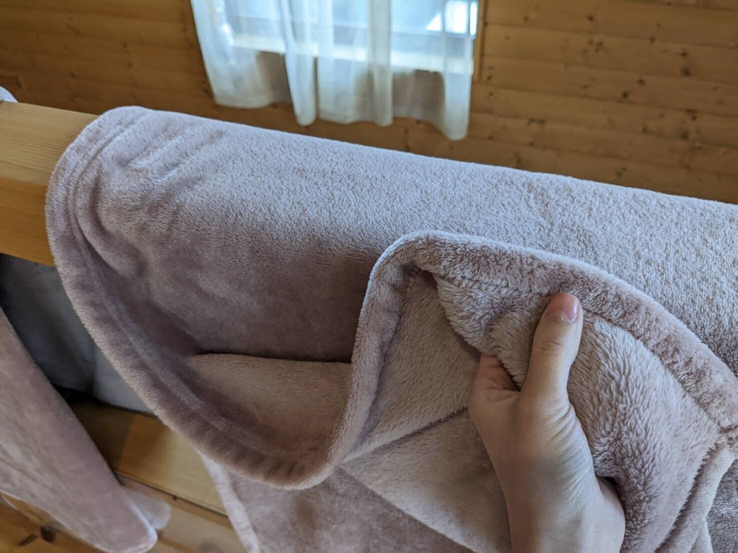 このブランケットは、そのまま洗濯機で丸洗いできる仕様なので、曜日を決めて週1で洗濯しています。分厚い「4層プレミアム」でも、朝起きてすぐに洗えば夜には乾いているので、洗い替えなしでOK!家事はもちろん、管理する数量も減ったことで気持ちもラクになります。