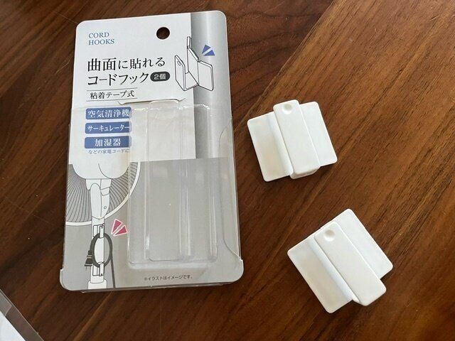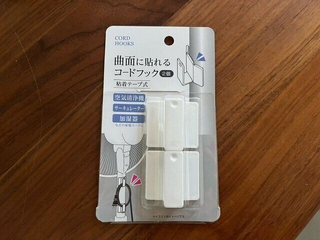 こちらです。「曲面に貼れるコードフック 2個」110円