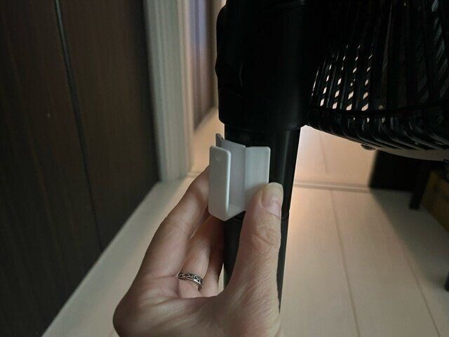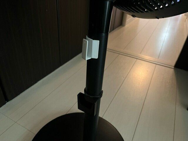 だけどこのコードフックなら、扇風機の首の部分にピタッと貼ることが出来るのです。