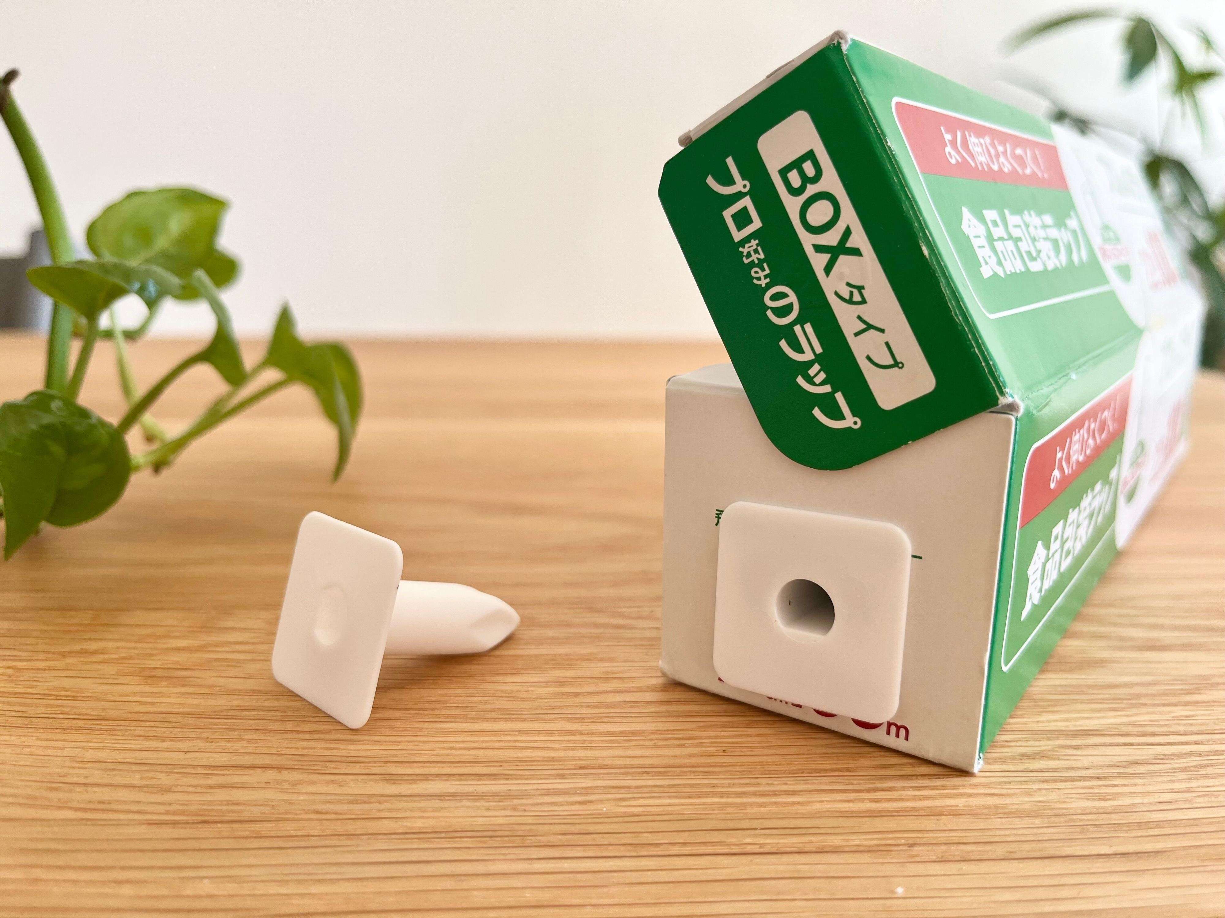 「ラップやホイルの飛び出し防止ストッパー」を挿し込むことで左右から芯をしっかり固定することができ、ラップやアルミホイルの芯が飛び出しにくくなります。残り少なくなってくると、より芯が箱から飛び出しがちですが、ストレスフリーで最後まで使えるようになりますよ!