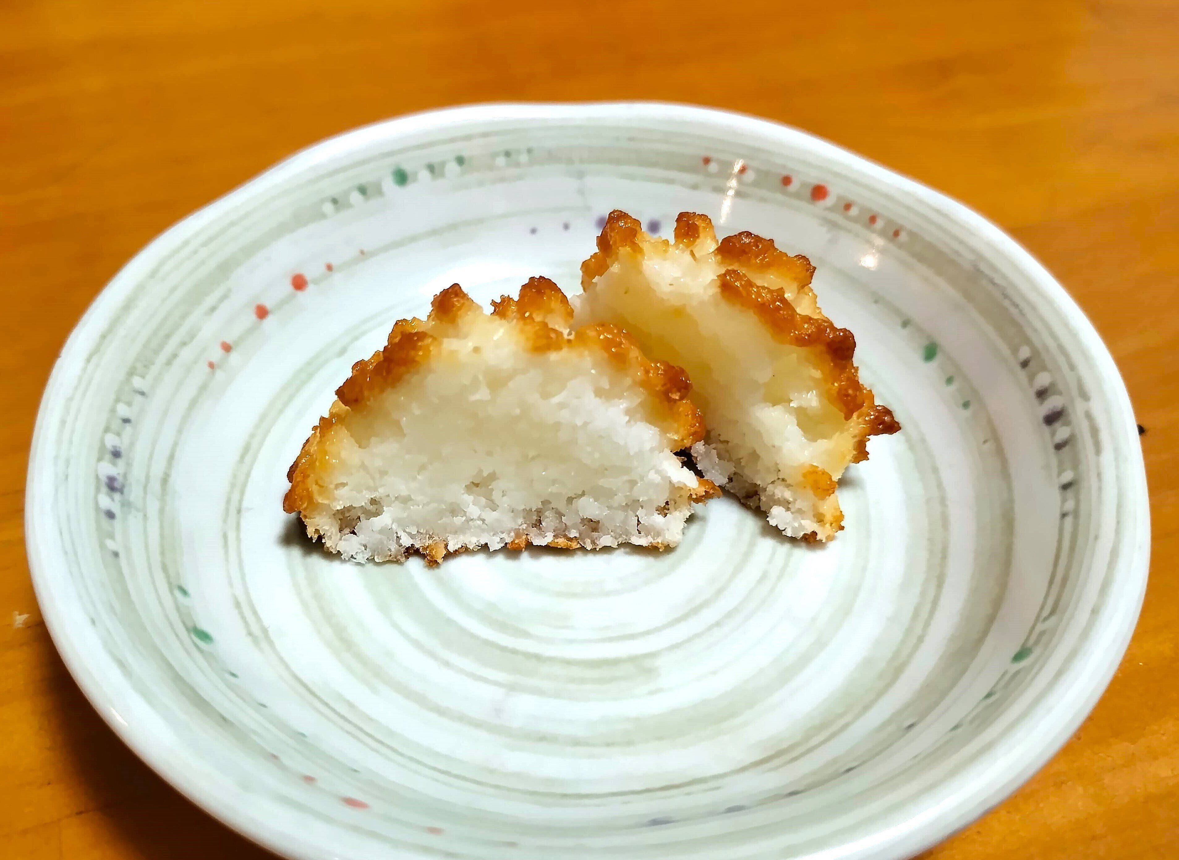 ややもっちりした生地とココナッツのシャリシャリした食感が病みつきになります。ココナッツが好きなかたなら手が止まらなくなってしまうかもしれません。