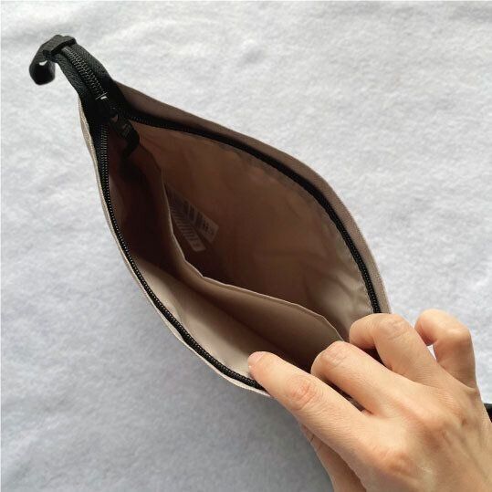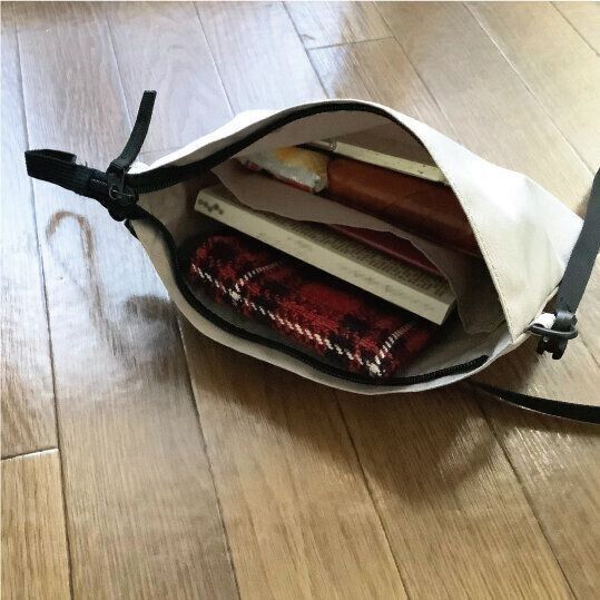 子どものお迎えやスーパーの買い物、病院のときなど手ぶらで行くには難しい、ちょっとしたお出かけに大活躍しているのが「ポーチとして使える撥水サコッシュ」です。一見薄くて少しのモノしか入らなそうでも意外と容量があるサコッシュ。中が散らかりにくい秘密は1枚の仕切りにあり。サッと整理してしまえるので捜すこともありません。