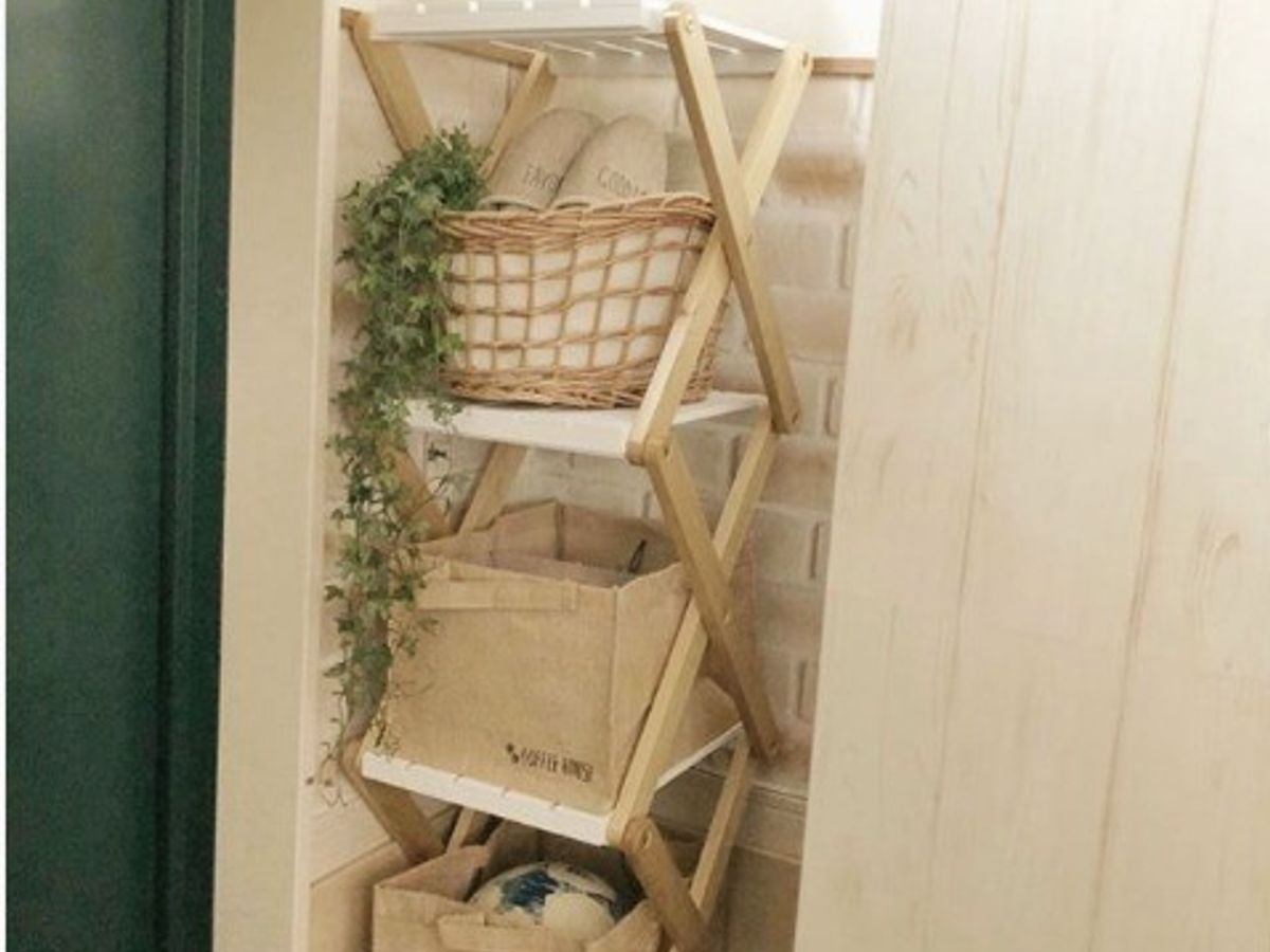 elie.snowdivaさんは、セリアのストッカーにおもちゃを入れています。カラフルなおもちゃを隠せてナチュラルな玄関の雰囲気とも馴染むデザインですね。