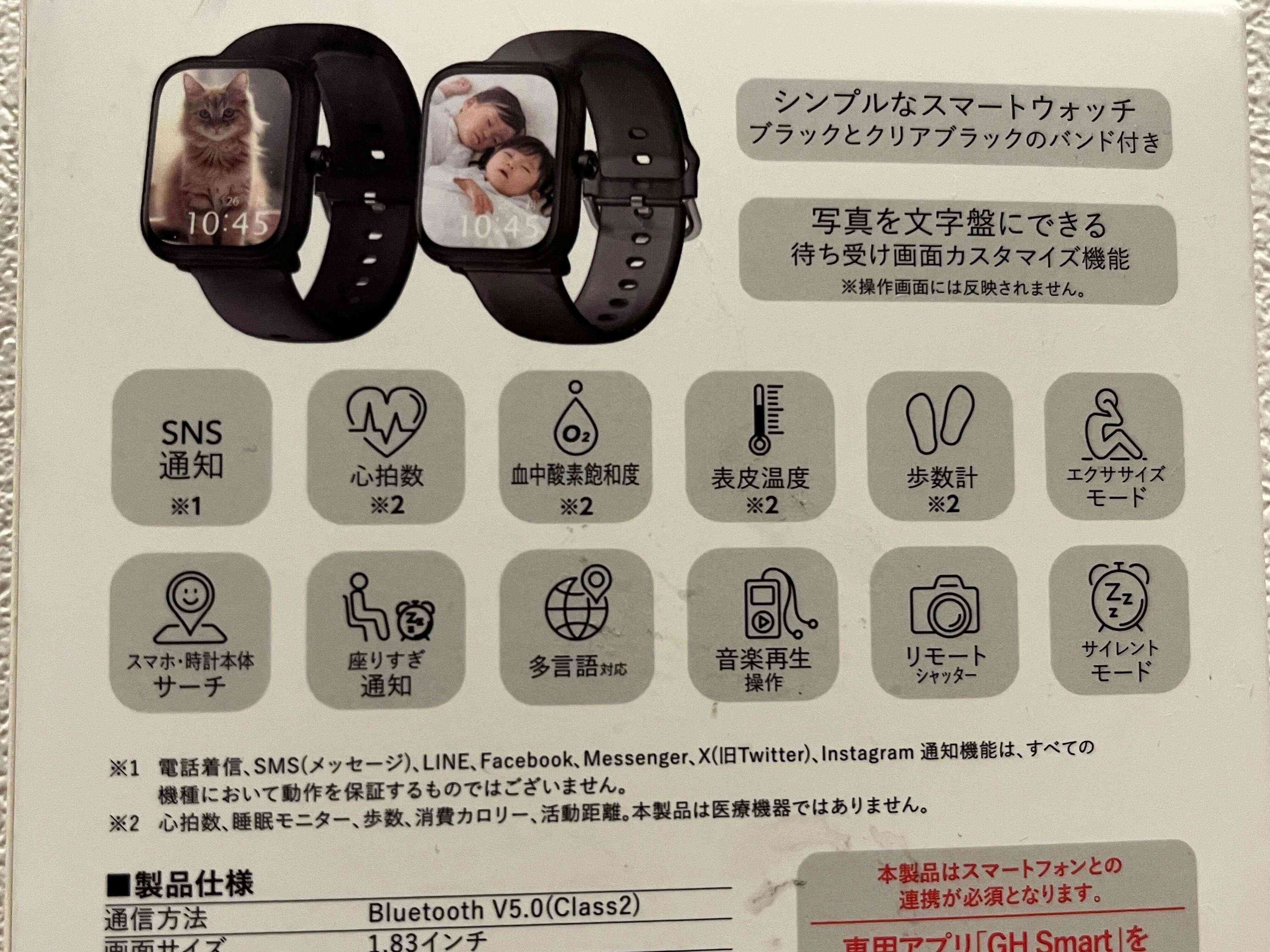憧れのスマートウォッチも、スリコなら4,180円で購入できるんです!ホワイトとブラックの2色がありますが、私はブラックを購入しました。