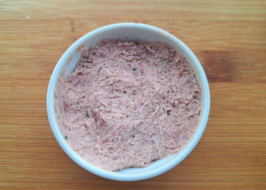 そのままだと、汚くなりやすいので、私は開封したらすぐにココットに入れ替えて、ちょっとおしゃれな姿にして冷蔵庫に入れています。