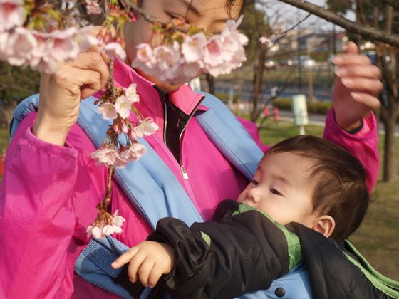お花見やピクニックは、思いもよらず長距離を歩かなくてはならないこともよくあります。そんなときに便利なのがベビーキャリーです。