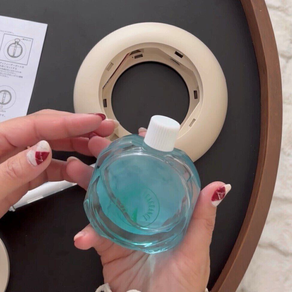 この青くてきれいな液体が入っているボトルが香りの素です。
