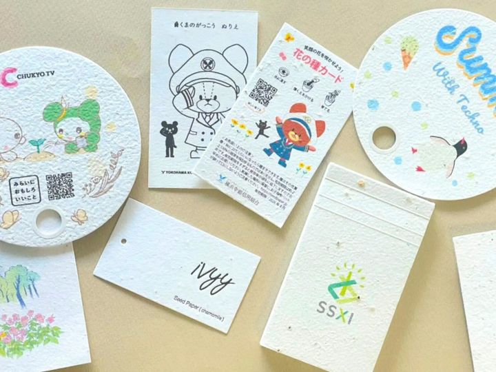 現在では立ち上げから1年で20社以上の企業や団体が参加し、ショップカードや名刺だけでなく、ノベルティのうちわや花の種カードなどとして配られているそうですよ。