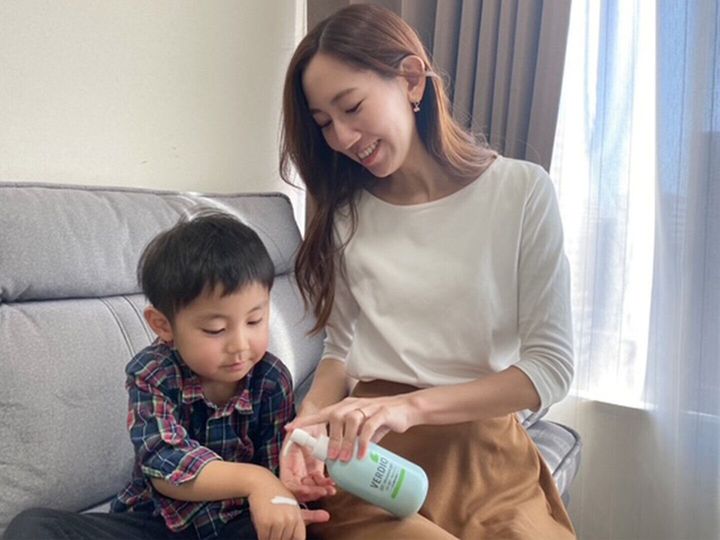 「ベルディオUV モイスチャージェルN」は、SPF数値が高く、ウォータープルーフなのに石鹸で簡単に落とせるところも魅力です。またエタノール無配合でも、さらりとした塗り心地で伸びがよく、みずみずしさと保湿力もあるから、子どもも嫌がらずに塗らせてくれて助かっています。
