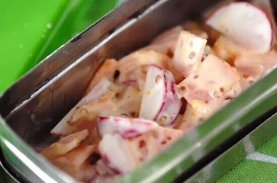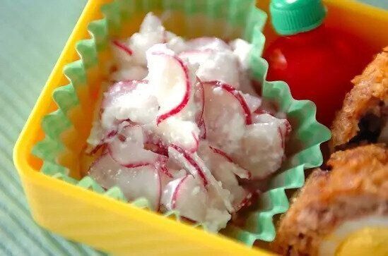 ラディッシュとハムの旨味の組み合わせがたまらないサラダです。赤い彩りがきれいなので、主菜に添えてもお弁当に入れても◎。少し水分が出ますので、お弁当箱に入れる際にはカップ等の使用がオススメです。