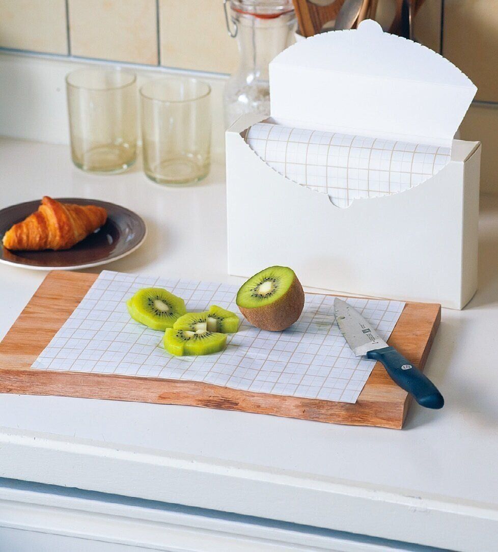 まな板に汚れや臭いが移らない使い捨てシート。肉や魚、色移りする食材などを切った後の洗い物がラクに。マス目があり、等分カットも簡単。(junkoさん)