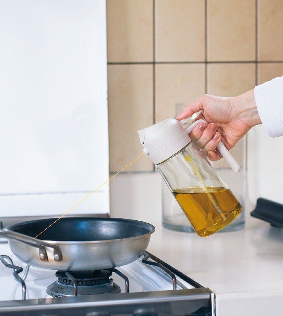 片手で開閉できるから、調理中でもスムーズ。シュッと吹きかけられるので、高騰中の油が少量で済む&ヘルシーなのも◎。品切れ店も続出。(SHIHOさん)