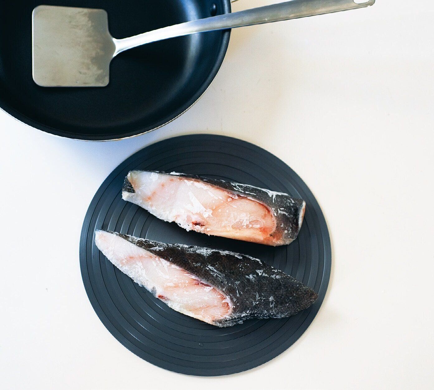 熱伝導性の高いアルミニウム合金のプレート。自然解凍よりスピーディーで、レンジにありがちな解凍ムラもなし。おべんとうの粗熱取りにも活躍。(maiさん)