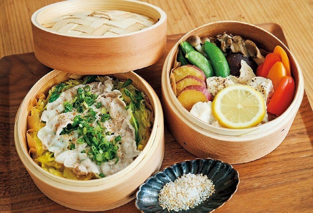猫がコンロ周りをうろつくと危ないから、煮込み料理や揚げ物はしない派。「せいろならお肉や野菜を彩りよく並べてサッと蒸すだけでOK。栄養も取れるし、ちょっといいお塩&ごまを添えていただくとおいしい!」。