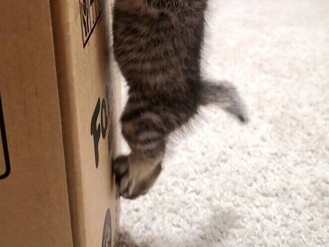 小さなポッケちゃんからはダンボールの壁は相当高いものに見えていたはず。それでも挑戦する勇敢さには感心してしまいますね。