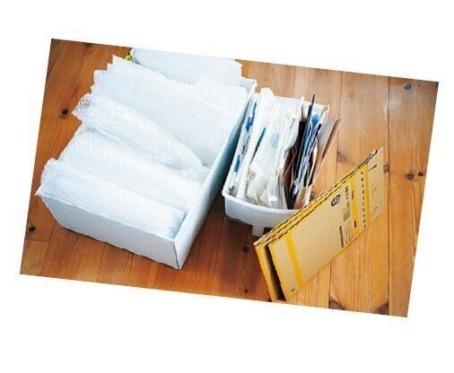 不要品が出るたびにメルカリに出品するのは面倒なので、年に数回、夏物や冬物など季節に合わせた服を売るタイミングで、他の不要品も一気に出品。「梱包材も常備しています」。