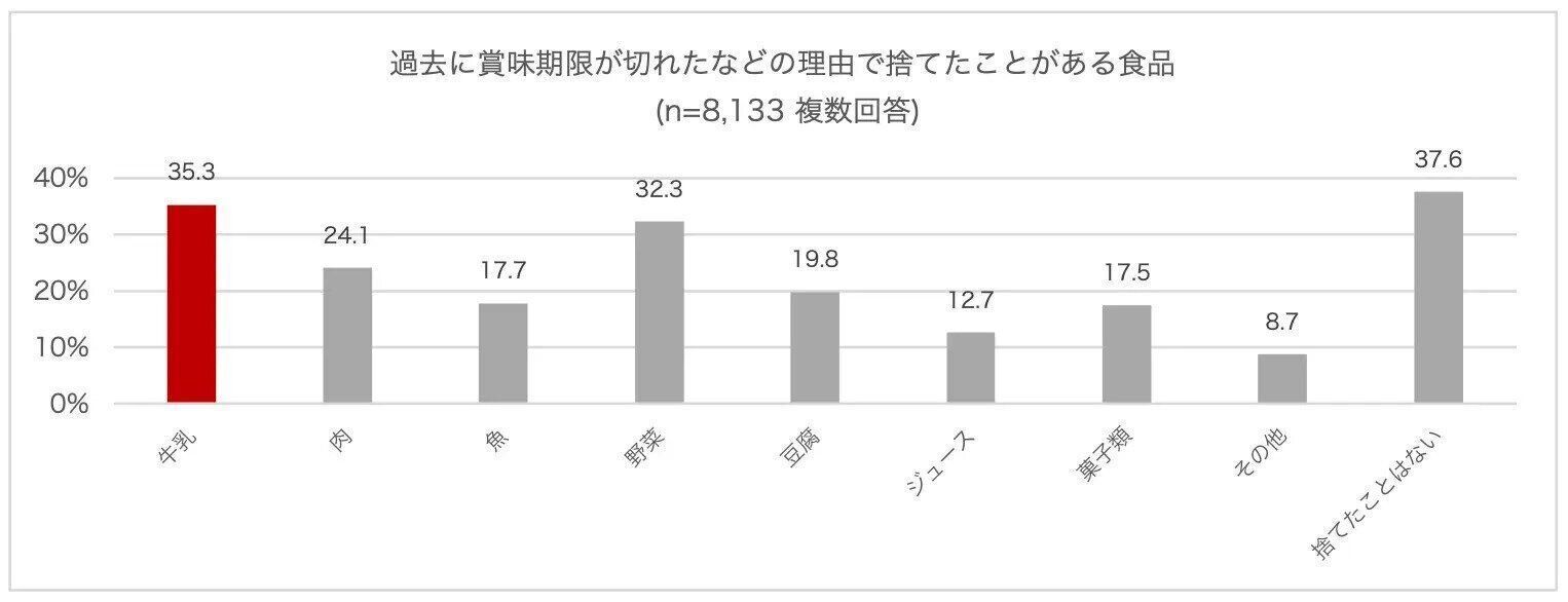 雪印メグミルク株式会社が実施した調査によると、家庭でいちばんフードロスになりやすい食品は牛乳であることがわかりました。さらに、牛乳を捨てた理由として「賞味期限内に飲みきれなかった」という回答がもっとも多いという結果に。