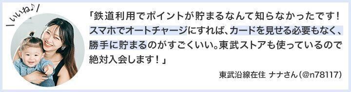 さらに、モバイルPASMOのオートチャージ(※4)を東武カードに紐づければ、チャージするたびに1.5%還元。もはやポイント還元なしで電車に乗るのがもったいなくなります。