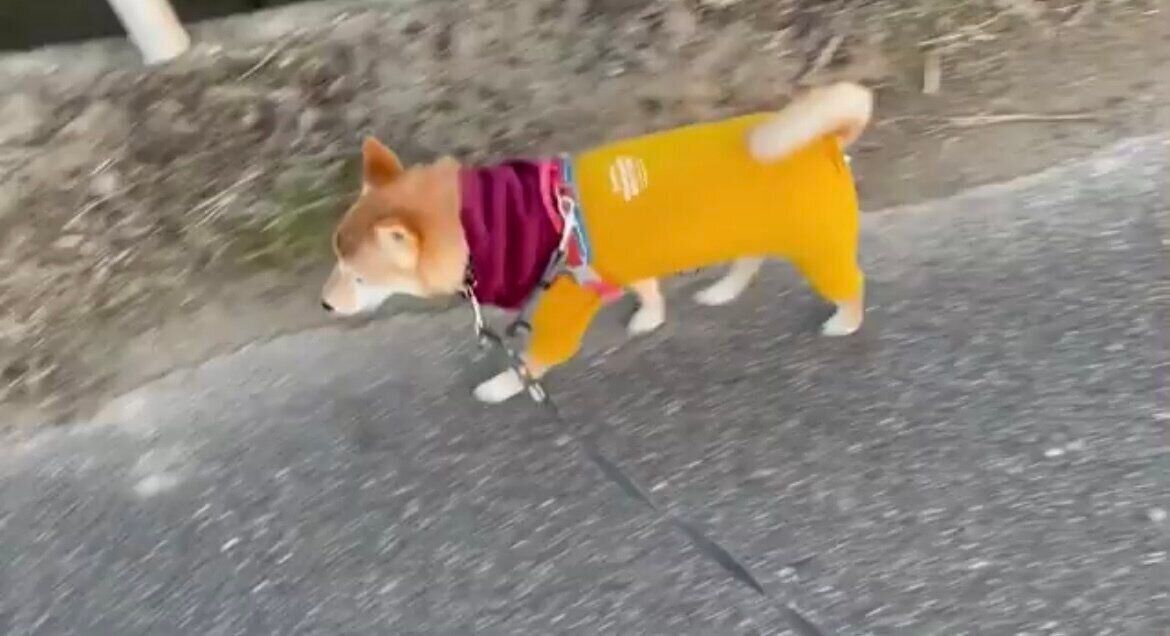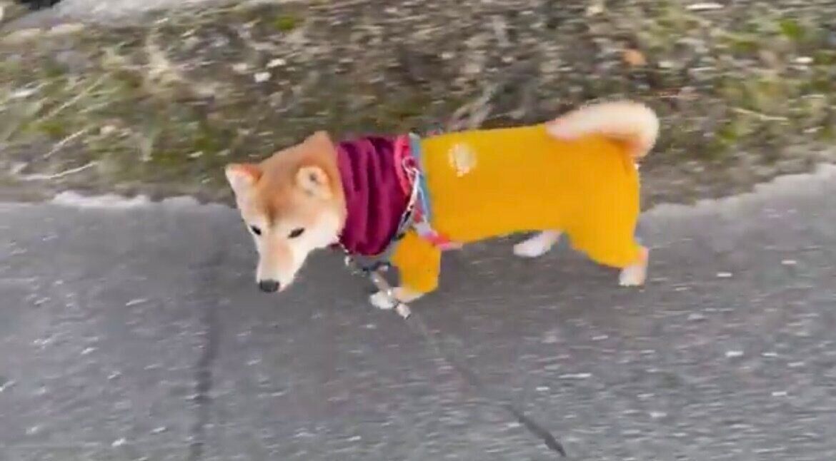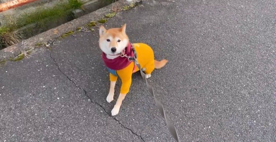 豆柴 はなこちゃんさん(@mamesiba_875)が投稿したのは、愛犬はなこちゃんとお散歩中のできごと。スタスタと歩き楽しんでいる様子のはなこちゃん、しかし突然ピタッと止まりお散歩を拒否してしまったそう。