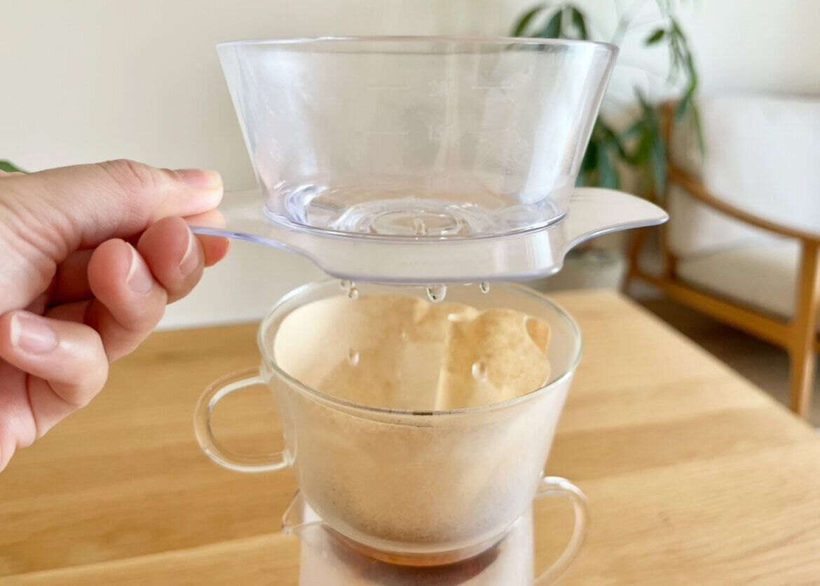 少しドリッパーを持ち上げてみると、お湯がシャワーのようにポタポタと落ちているのが見えます。さすが「シャワードリップ」というネーミングなだけありますよね。