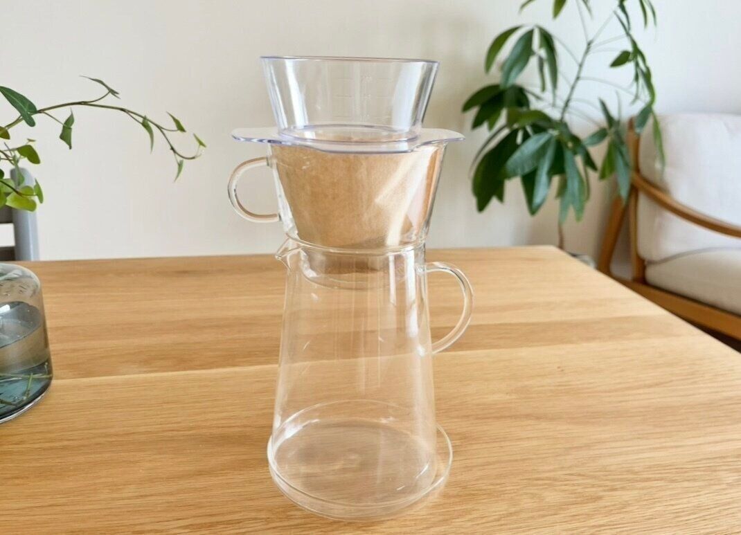 見た目はごく一般的な透明のドリッパーのようなデザイン。ですが、使い方は少し違っていて、ドリッパーの上に乗せて使います。直径約7cm~12cmのドリッパーに対応しているので、ほとんどのドリッパーに使用可能です。