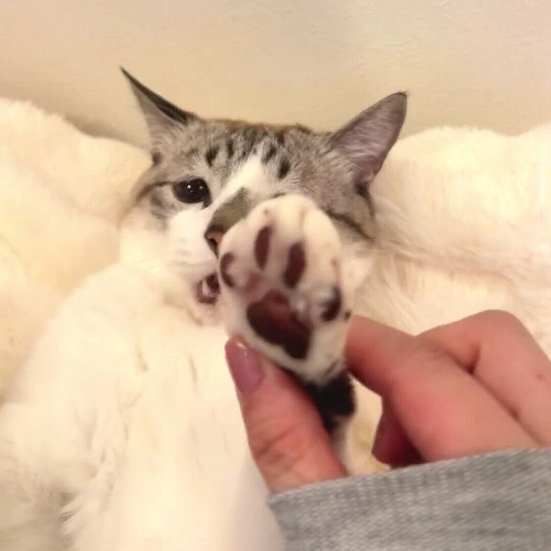 ぴえん猫ミントさん(@piennekomint)の愛猫・ミントちゃんが「かわいすぎる」と話題です。「爪が伸びていないかな?」とチェックされていたミントちゃん。されるがままになりながらも、感情を隠せない表情に4.4万いいねが集まりました。
