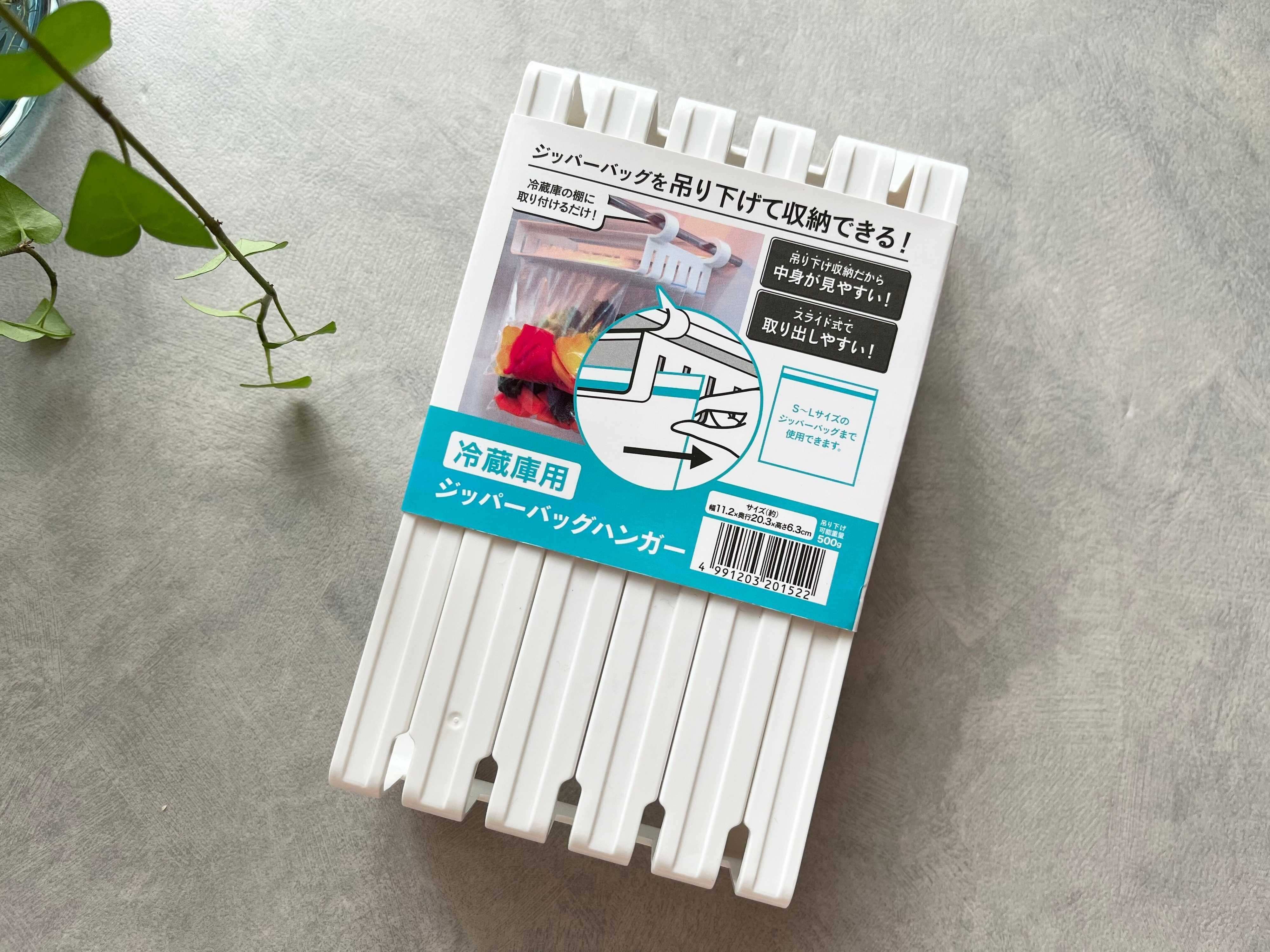 ご紹介するのは、セリアの「冷蔵庫用ジッパーバッグハンガー」。こちらはジッパーバッグ専用のハンガーという、なんとも斬新すぎる商品。でもコレを使えば、冷蔵庫の中で置き場所に困りがちなジッパーバッグをスッキリと収納することができるんですよ!価格は110円で販売されています。