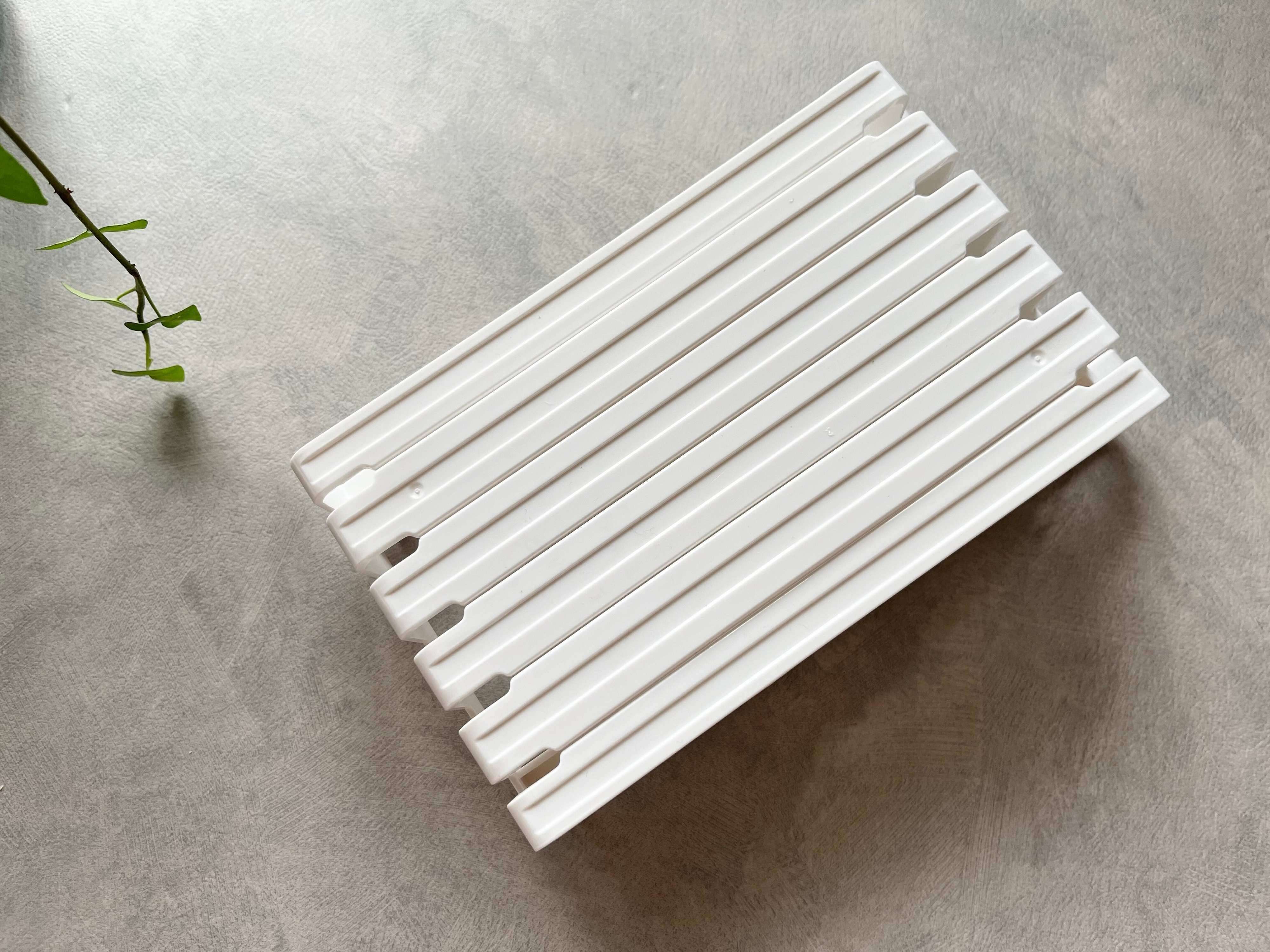 サイドから見ると5本の隙間があり、吊り下げるときはこの隙間にジッパーバッグをスライドさせながら差し込んで使用します。