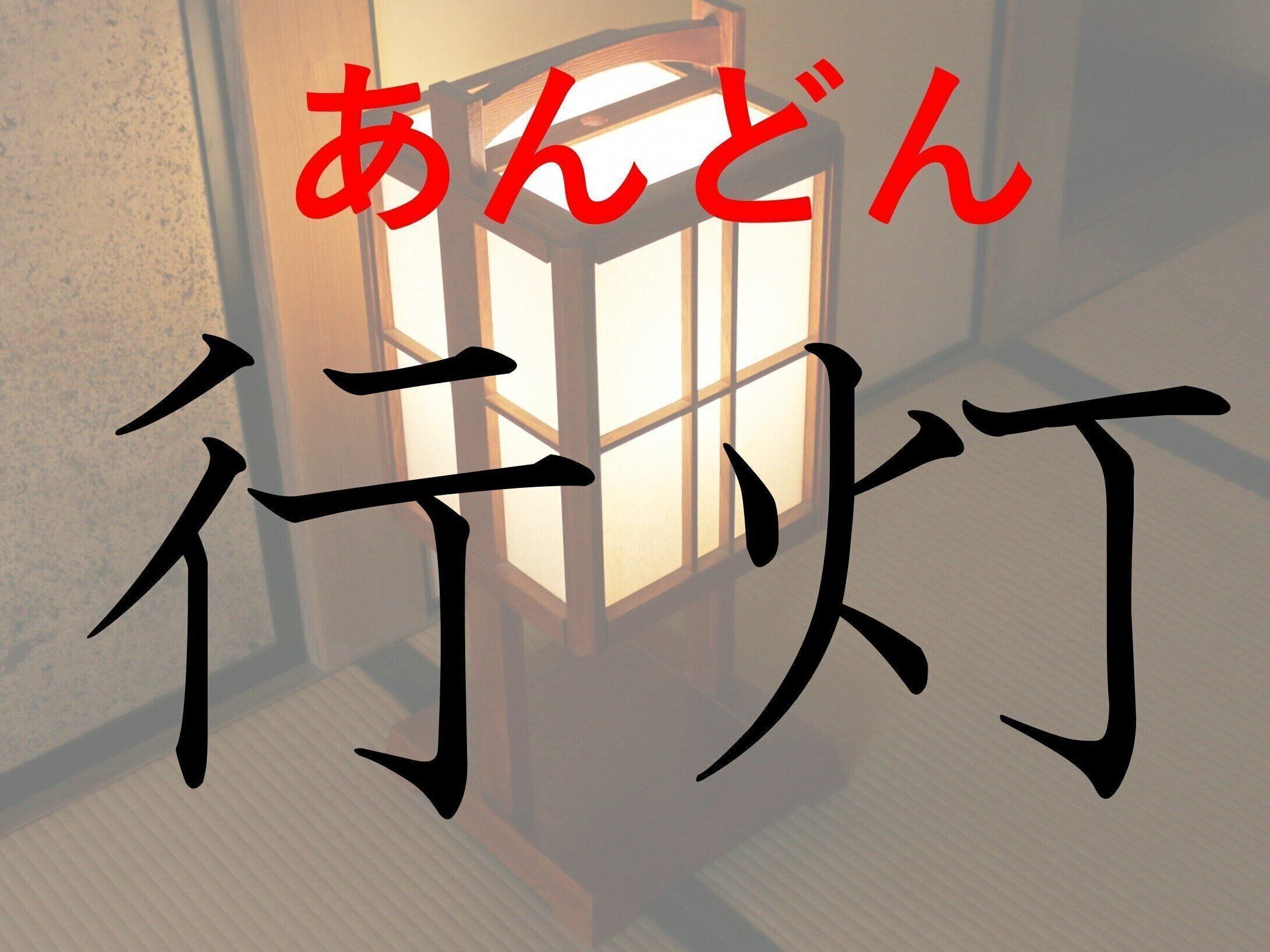 行灯は江戸時代に普及した照明器具。もともとは持ち歩くことができる照明だったため「行」の字が使われました。「行灯」は「あんどう」と読むことも可能ですが、現在では「あんどん」と読むのが一般的です。