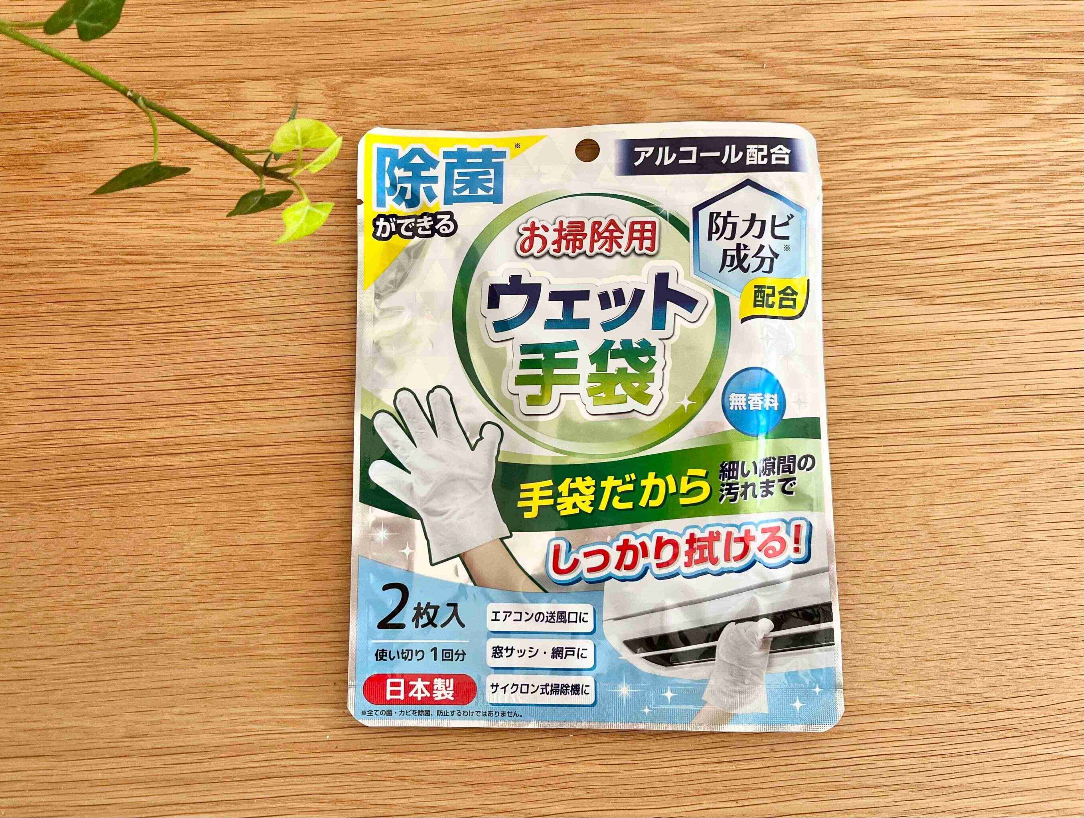 ご紹介するのは、セリアの「除菌ができるお掃除用ウェット手袋」という商品。商品名の通り、手にはめて使う、手袋型のウェットシートのようなお掃除グッズです。ひと袋に2枚入で、価格は110円で販売されています。