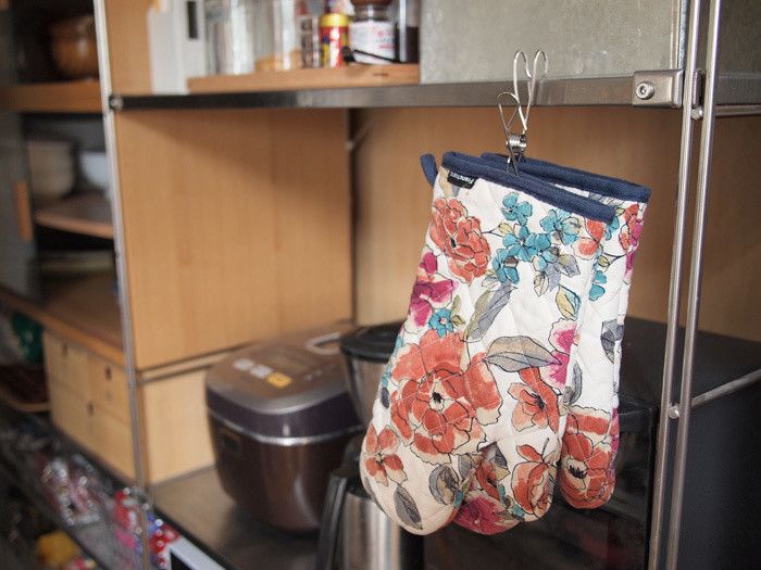 なにかと物が散乱しやすい台所も、ひっかけるワイヤークリップの出番!ひっかける場所さえあればきちんと整理整頓でき、見た目にも整った収納をすることができます。急な出番の多い鍋つかみも、クリップにはさんで台所にひっかけておけば、使いたいときにすぐに使えて便利!
